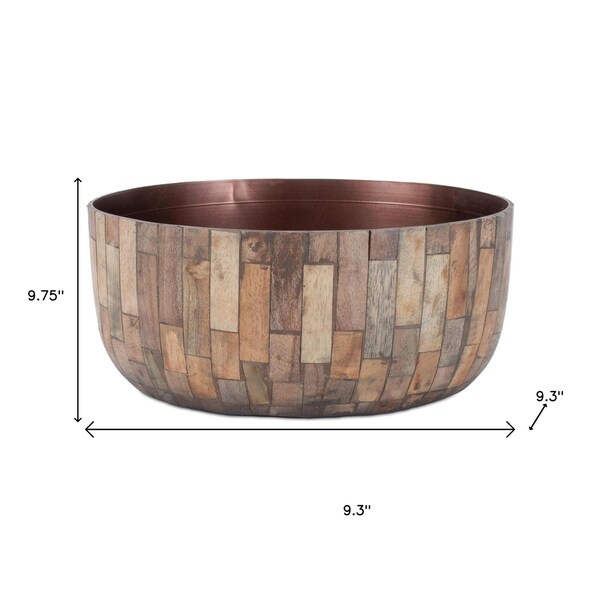 Set of two brown wood 1 ounce round pot planters perfectly combines functionality with modern design. Crafted from high-quality manufactured wood, these planters bring a touch of elegance to your indoor space. The round shape adds a soft look, making them ideal for various decor styles. Each planter features drainage holes to ensure proper water management, promoting healthy plant growth. This set includes two planters, allowing you to showcase multiple plants and create a cohesive aesthetic. Enhance your home decor while providing a nurturing environment for your favorite greenery with this stylish planter duo. These versatile pieces are perfect for any room in your home, adding warmth and charm to your living space. 9.75-inch h x 9.3-inch w x 9.3-inch d.