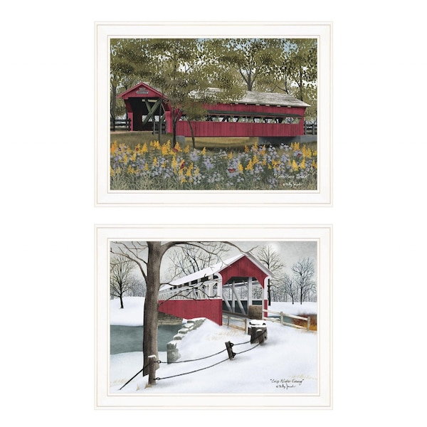 This set of two covered bridge collection iii white framed print wall art will add a beautiful decorative accent to your decor. This print is a visual artistic expression that allows you to decorate your space in style. Reproduced for you on paper, this hanging decorative accent will be a trendy and fashionable way to dress your walls. Hang on your wall to add some up to date fashion and decoration. Utilize this opportunity to create a focal point in the room with this fabulous wall decor option. 21-inch H x 27-inch W x 1-inch D
