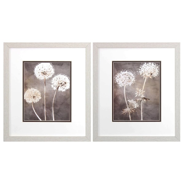 Bring some sizzle to your space with this eye-catching set of two dandelion white framed print wall art. This print is a visual artistic expression that allows you to decorate your space in style. This block print is a way to express your artistic style and add some fashion to your walls. Reproduced for you on paper, this hanging decorative accent will be a trendy and fashionable way to dress your walls. Hang on your wall to add some up to date fashion and decoration. Adding this hanging wall art to your space to make your room feel more finished and attractive. Utilize this opportunity to create a focal point in the room with this fabulous wall decor option. Instantly liven up your space with this art that brings color and dimension to your walls. 16-inch h x 14-inch w x 1-inch d