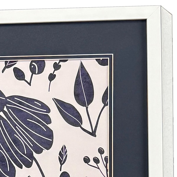 Bring some sizzle to your space with this eye-catching set of two denim floral white framed wall art. Reproduced for you on paper, this hanging decorative accent will be a trendy and fashionable way to dress your walls. Adding this hanging wall art to your space to make your room feel more finished and attractive. Utilize this opportunity to create a focal point in the room with this fabulous wall decor option. 20.00-inch h x 17.00-inch w x 2.00-inch d.