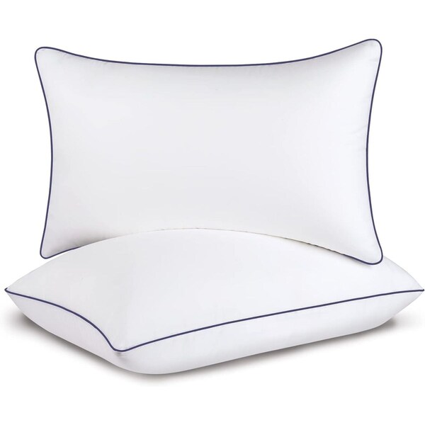 Set of two down alternative medium king size bed pillows offer the perfect blend of comfort and support for all sleep positions, whether you are a side, back, or stomach sleeper. With a medium comfort level, these pillows ensure a restful night’s sleep. The down alternative fill material provides a plush feel while being easy to maintain. Additionally, these pillows are breathable, include antimicrobial properties, and are machine washable to promote a healthier sleeping environment. Enjoy the benefit of a comfortable night's sleep with these two king pillows that enhance both your sleep quality and bedroom style. 1-inch h x 20-inch w x 36-inch d.