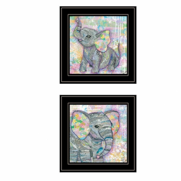 Unique and decorative, this set of two elephant i and ii 2 black framed print wall art will leave a lasting impression. Update your walls with this wild jungle animal decor. This print is a visual artistic expression that allows you to decorate your space in style. Reproduced for you on paper, this hanging decorative accent will be a trendy and fashionable way to dress your walls. Adding this hanging wall art to your space to make your room feel more finished and attractive. Utilize this opportunity to create a focal point in the room with this fabulous wall decor option. 15-inch H x 15-inch W x 1-inch D