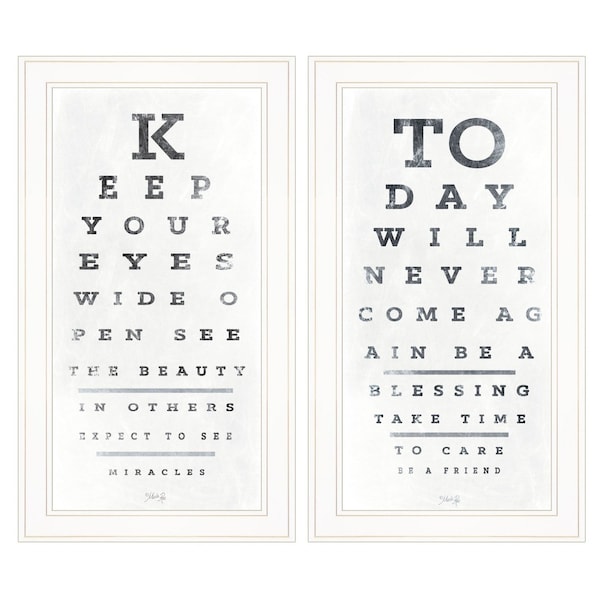 Unique and decorative, this set of two eye charts 3 white framed print wall art will leave a lasting impression. This print is a visual artistic expression that allows you to decorate your space in style. Reproduced for you on paper, this hanging decorative accent will be a trendy and fashionable way to dress your walls. Hang on your wall to add some up to date fashion and decoration. Instantly liven up your space with this art that brings color and dimension to your walls. 27-inch H x 15-inch W x 1-inch D