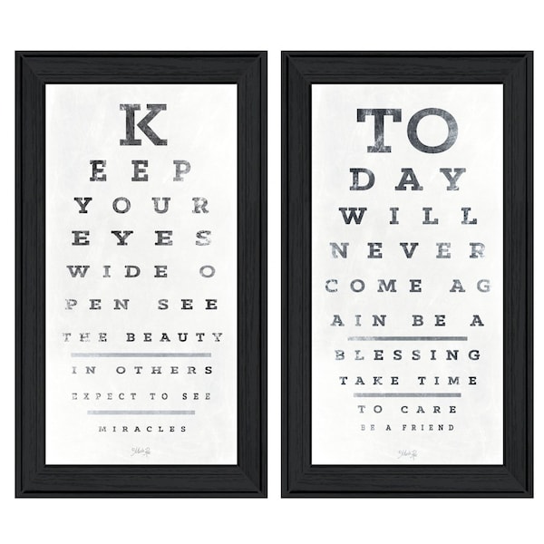 The set of two eye charts 4 black framed print wall art is the perfect decorative accessory for your home. This print is a visual artistic expression that allows you to decorate your space in style. Reproduced for you on paper, this hanging decorative accent will be a trendy and fashionable way to dress your walls. Hang on your wall to add some up to date fashion and decoration. Instantly liven up your space with this art that brings color and dimension to your walls. 27-inch H x 15-inch W x 1-inch D