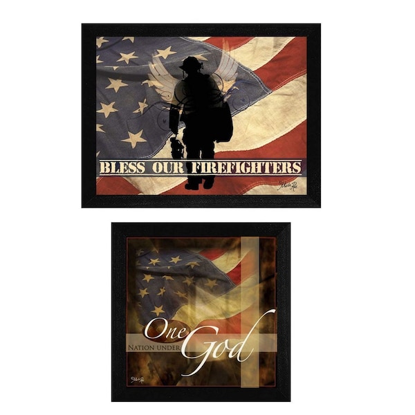The set of two firefighters one nation black framed print wall art is the perfect decorative accessory for your home. This print is a visual artistic expression that allows you to decorate your space in style. Reproduced for you on paper, this hanging decorative accent will be a trendy and fashionable way to dress your walls. Adding this hanging wall art to your space to make your room feel more finished and attractive. Instantly liven up your space with this art that brings color and dimension to your walls. 14-inch H x 36-inch W x 1.5-inch D