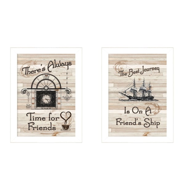 Add an air of fashion to your room and rejuvenate the space with this set of two friendship journey 3 white framed print kitchen wall art. This print is a visual artistic expression that allows you to decorate your space in style. Reproduced for you on paper, this hanging decorative accent will be a trendy and fashionable way to dress your walls. Adding this hanging wall art to your space to make your room feel more finished and attractive. Utilize this opportunity to create a focal point in the room with this fabulous wall decor option. 14-inch H x 10-inch W x 1-inch D