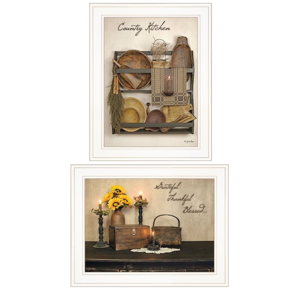 Bring some sizzle to your space with this eye-catching set of two grateful and blessed white framed print kitchen wall art. This print is a visual artistic expression that allows you to decorate your space in style. Reproduced for you on paper, this hanging decorative accent will be a trendy and fashionable way to dress your walls. Adding this hanging wall art to your space to make your room feel more finished and attractive. Utilize this opportunity to create a focal point in the room with this fabulous wall decor option. 19-inch H x 15-inch W x 1-inch D