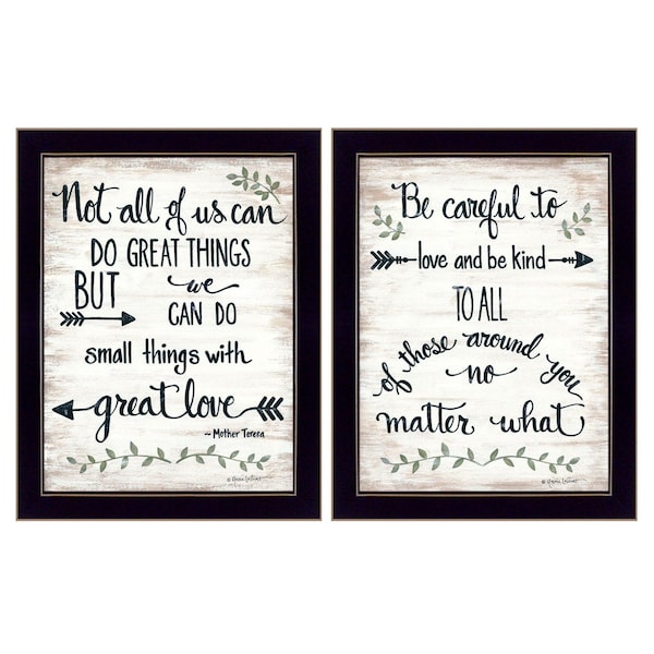 This set of two great love 1 black framed print wall art will add a beautiful decorative accent to your decor. This print is a visual artistic expression that allows you to decorate your space in style. Reproduced for you on paper, this hanging decorative accent will be a trendy and fashionable way to dress your walls. Hang on your wall to add some up to date fashion and decoration. Instantly liven up your space with this art that brings color and dimension to your walls. 18-inch H x 14-inch W x 1-inch D
