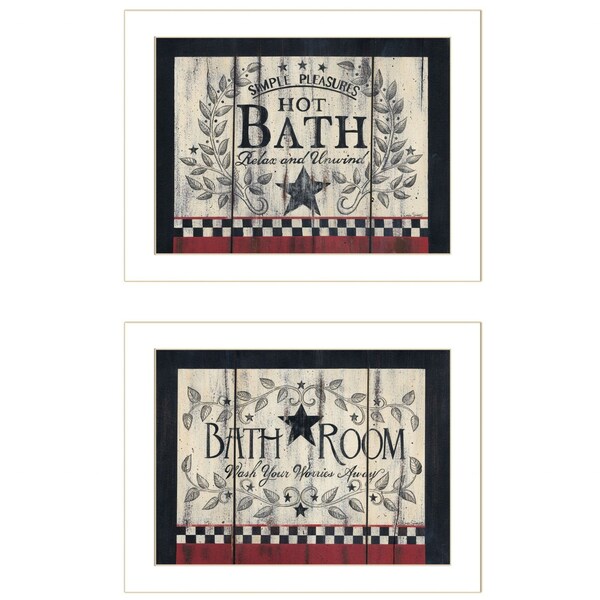 Unique and decorative, this set of two hot bath 10 white framed print bathroom wall art will leave a lasting impression. This print is a visual artistic expression that allows you to decorate your space in style. Reproduced for you on paper, this hanging decorative accent will be a trendy and fashionable way to dress your walls. Adding this hanging wall art to your space to make your room feel more finished and attractive. Utilize this opportunity to create a focal point in the room with this fabulous wall decor option. 14-inch H x 18-inch W x 1-inch D
