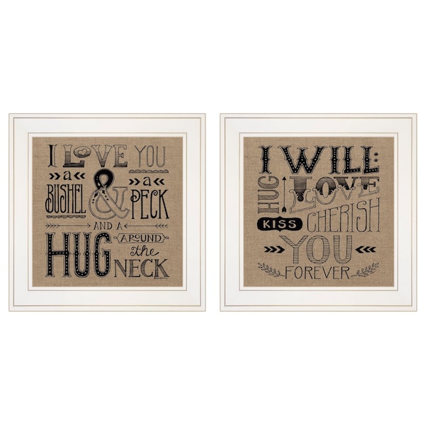 The set of two hugs or forever 1 white framed print wall art is the perfect decorative accessory for your home. This print is a visual artistic expression that allows you to decorate your space in style. Reproduced for you on paper, this hanging decorative accent will be a trendy and fashionable way to dress your walls. Adding this hanging wall art to your space to make your room feel more finished and attractive. Instantly liven up your space with this art that brings color and dimension to your walls. 15-inch H x 15-inch W x 1-inch D