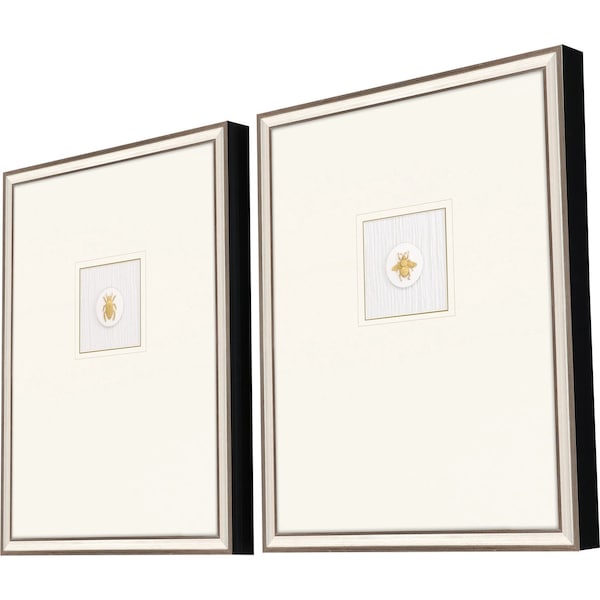 Unique and decorative, this set of two insect intaglio i silver framed print wall art will leave a lasting impression. This print is a visual artistic expression that allows you to decorate your space in style. The mixed media photography style makes this photographic art appealing and gives it visual interest. Reproduced for you on paper, this hanging decorative accent will be a trendy and fashionable way to dress your walls. Hang on your wall to add some up to date fashion and decoration. Utilize this opportunity to create a focal point in the room with this fabulous wall decor option. 25-inch H x 20-inch W x 2-inch D