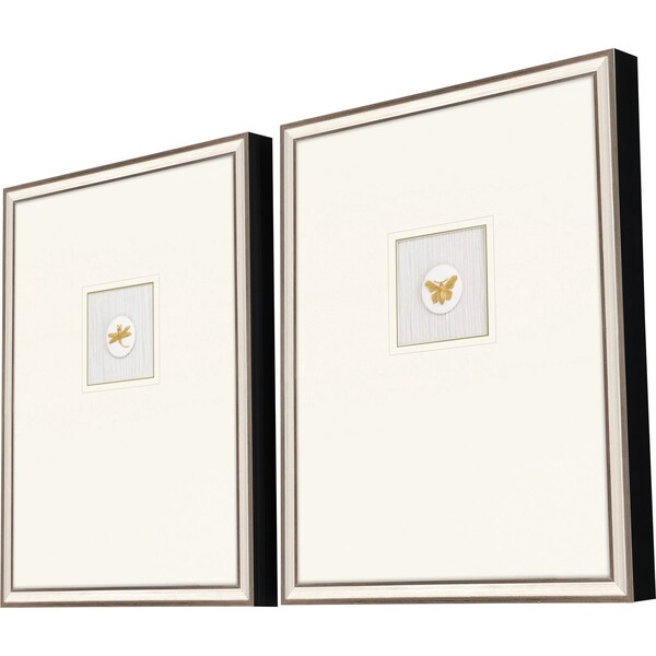 Add an air of fashion to your room and rejuvenate the space with this set of two insect intaglio ii silver framed print wall art. This print is a visual artistic expression that allows you to decorate your space in style. The mixed media photography style makes this photographic art appealing and gives it visual interest. Reproduced for you on paper, this hanging decorative accent will be a trendy and fashionable way to dress your walls. Adding this hanging wall art to your space to make your room feel more finished and attractive. Instantly liven up your space with this art that brings color and dimension to your walls. 25-inch H x 20-inch W x 2-inch D
