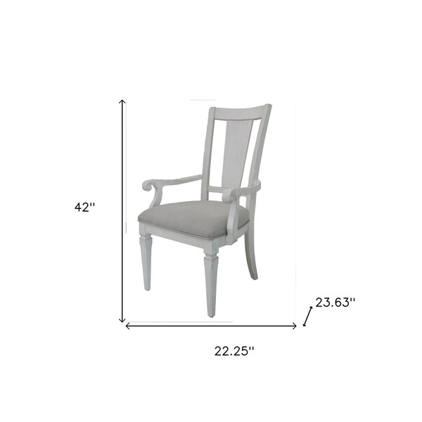 Set of Two Light Gray and White Upholstered Linen And Solid Wood Open Back Dining Arm Chairs, 2PK