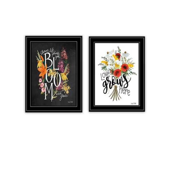 Add an air of fashion to your room and rejuvenate the space with this set of two love and bloom black framed print wall art. This print is a visual artistic expression that allows you to decorate your space in style. Reproduced for you on wood, this hanging decorative accent will be a trendy and fashionable way to dress your walls in a rustic and modern farmhouse vibe. Adding this hanging wall art to your space to make your room feel more finished and attractive. Utilize this opportunity to create a focal point in the room with this fabulous wall decor option. 19-inch H x 31-inch W x 1-inch D