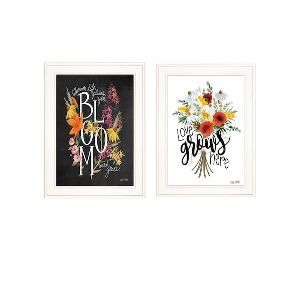 Bring some sizzle to your space with this eye-catching set of two love and bloom white framed print wall art. This print is a visual artistic expression that allows you to decorate your space in style. Reproduced for you on wood, this hanging decorative accent will be a trendy and fashionable way to dress your walls in a rustic and modern farmhouse vibe. Hang on your wall to add some up to date fashion and decoration. Instantly liven up your space with this art that brings color and dimension to your walls. 19-inch H x 31-inch W x 1-inch D