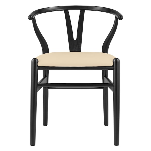 Bring this comfortable set of two natural and black upholstery wishbone back dining arm chairs to your table to enjoy long lasting quality time with your family and friends. Complete with wishbone back, this chair not only looks good but is comfortable. This armchair chair has a sleek silhouette making it ideal for seating around the table but can also double as an accent chair. Dining chairs are a great way to compliment your kitchen or dining room but can also be used in the foyer, hallway, or any room you might need extra seating. 30.50-inch h x 21.50-inch w x 20.50-inch d.