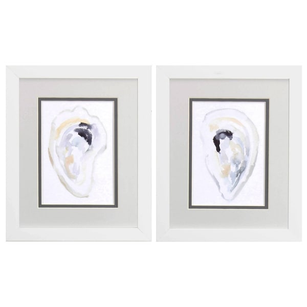 Unique and decorative, this set of two oyster shell white framed print wall art will leave a lasting impression. This print is a visual artistic expression that allows you to decorate your space in style. This block print is a way to express your artistic style and add some fashion to your walls. Reproduced for you on paper, this hanging decorative accent will be a trendy and fashionable way to dress your walls. Hang on your wall to add some up to date fashion and decoration. Utilize this opportunity to create a focal point in the room with this fabulous wall decor option. 11-inch H x 9-inch W x 1-inch D