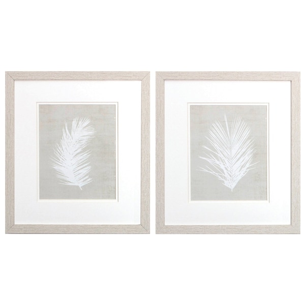 Bring some sizzle to your space with this eye-catching set of two palm oasis white framed print wall art. This print is a visual artistic expression that allows you to decorate your space in style. Reproduced for you on paper, this hanging decorative accent will be a trendy and fashionable way to dress your walls. Hang on your wall to add some up to date fashion and decoration. Utilize this opportunity to create a focal point in the room with this fabulous wall decor option. 16-inch H x 14-inch W x 1-inch D