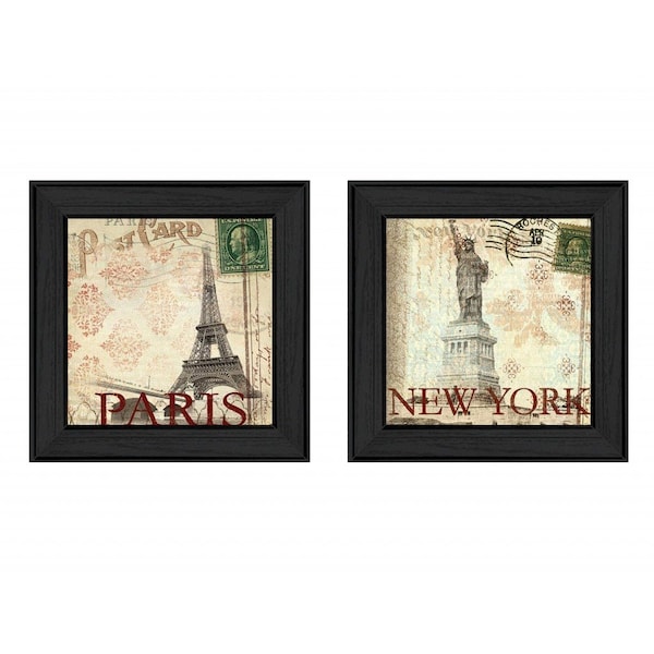 Bring some sizzle to your space with this eye-catching set of two post cards black framed print wall art. This print is a visual artistic expression that allows you to decorate your space in style. Reproduced for you on paper, this hanging decorative accent will be a trendy and fashionable way to dress your walls. Hang on your wall to add some up to date fashion and decoration. Utilize this opportunity to create a focal point in the room with this fabulous wall decor option. 14-inch H x 28-inch W x 1.5-inch D