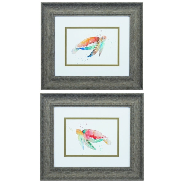 The set of two red and blue turtle framed wall art is the perfect decorative accessory for your home. Hang on your wall to add some up to date fashion and decoration. Instantly liven up your space with this watercolor sea turtle wall art that brings color and dimension to your walls. 11-inch H x 13-inch W x 1-inch D