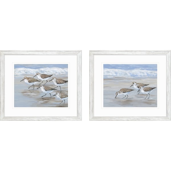 The set of two sandpipers white framed print wall art is the perfect decorative accessory for your home. This bird inspired art will be a great addition to your space. This print is a visual artistic expression that allows you to decorate your space in style. This block print is a way to express your artistic style and add some fashion to your walls. Reproduced for you on paper, this hanging decorative accent will be a trendy and fashionable way to dress your walls. Hang on your wall to add some up to date fashion and decoration. Adding this hanging wall art to your space to make your room feel more finished and attractive. Utilize this opportunity to create a focal point in the room with this fabulous wall decor option. Instantly liven up your space with this art that brings color and dimension to your walls. 26-inch h x 30-inch w x 1-inch d