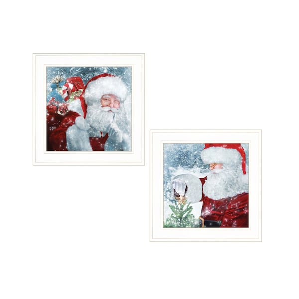Set a festive christmas mood with this set of two santas blessings 1 white framed print wall art. This print is a visual artistic expression that allows you to decorate your space in style. Reproduced for you on wood, this hanging decorative accent will be a trendy and fashionable way to dress your walls in a rustic and modern farmhouse vibe. Adding this hanging wall art to your space to make your room feel more finished and attractive. Utilize this opportunity to create a focal point in the room with this fabulous wall decor option. 15-inch H x 31-inch W x 1-inch D