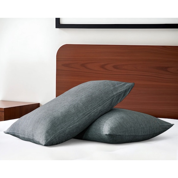 Set of Two Slate Gray Linen Pillowcases