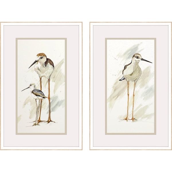 Add an air of fashion to your room and rejuvenate the space with this set of two stilt birds white framed print wall art. This bird inspired art will be a great addition to your space. This print is a visual artistic expression that allows you to decorate your space in style. The mixed media photography style makes this photographic art appealing and gives it visual interest. Reproduced for you on paper, this hanging decorative accent will be a trendy and fashionable way to dress your walls. Hang on your wall to add some up to date fashion and decoration. Utilize this opportunity to create a focal point in the room with this fabulous wall decor option. 33-inch H x 21-inch W x 2-inch D
