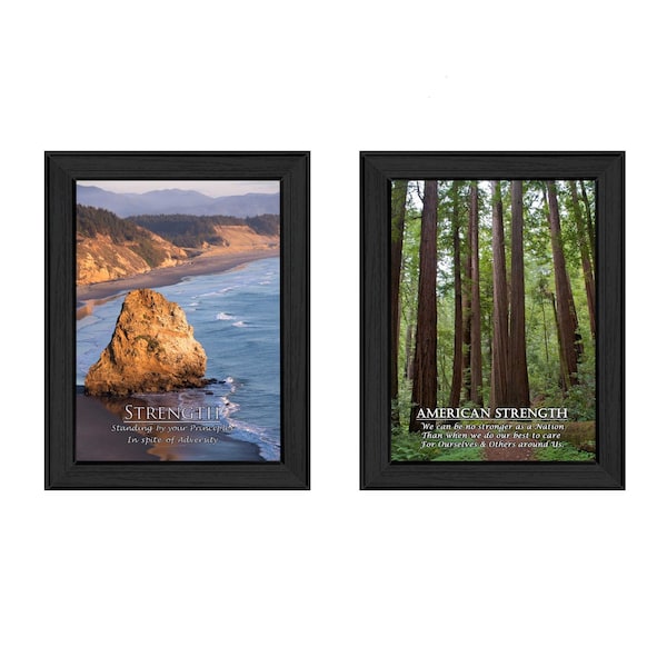 The set of two strength 1 black framed print wall art is the perfect decorative accessory for your home. This print is a visual artistic expression that allows you to decorate your space in style. Reproduced for you on paper, this hanging decorative accent will be a trendy and fashionable way to dress your walls. Hang on your wall to add some up to date fashion and decoration. Instantly liven up your space with this art that brings color and dimension to your walls. 14-inch H x 20-inch W x 1.5-inch D