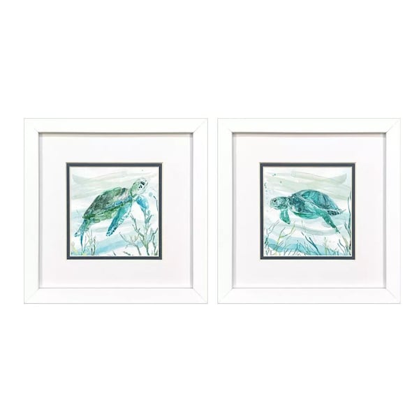 Unique and decorative, this set of two tropical current white framed wall art will leave a lasting impression. Update your walls with this great tropical sea life art. Reproduced for you on paper, this hanging decorative accent will be a trendy and fashionable way to dress your walls. Hang on your wall to add some up to date fashion and decoration. Utilize this opportunity to create a focal point in the room with this fabulous wall decor option. 11.00-inch h x 11.00-inch w x 2.00-inch d.