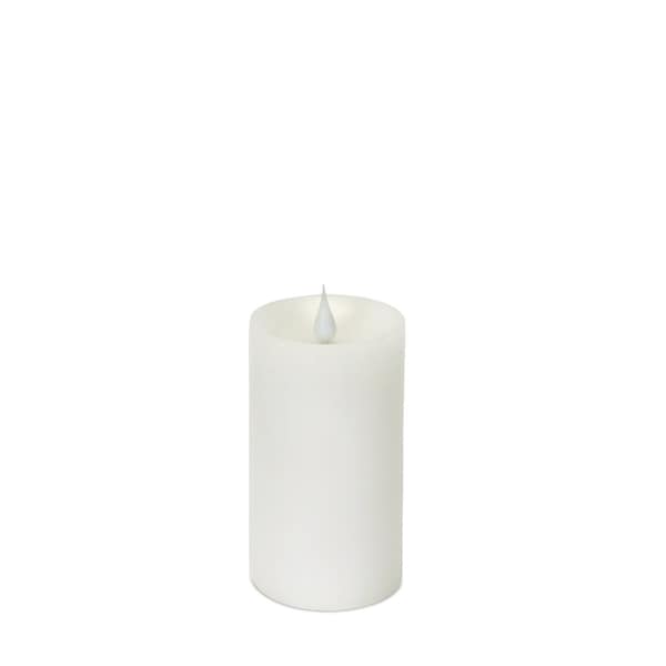 Don't miss out on the enchantment of candlelight. Embrace the convenience and beauty of this set of two white flameless pillar candle today. The classic, cylindrical shape make this pillar candle a versatile addition to any decor style, whether it's traditional, contemporary, or modern. Designed to be dripless so there is no more worrying about wax drips ruining your furniture or creating a mess. The flickering feature is designed to create an authentic candlelight experience. This candle includes a remote control so you can be in charge of the various settings and features. Let the warm glow of candlelight create an intimate and welcoming ambiance for your guests or a soothing atmosphere for yourself. 5-inch H x 3-inch W x 3-inch D