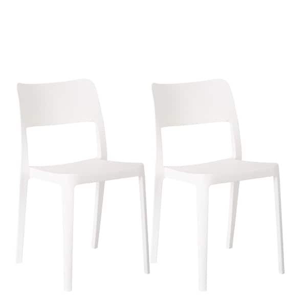 Elevate your outdoor aesthetic with the chic and inviting set of two white heavy duty plastic outdoor stacking accent chairs, designed to be the centerpiece of relaxation and conversation under the open sky. Safe to use both indoors and out, these chairs are designed to be not only durable but comfortable. An armless design gives this chair a modern vibe. The addition of this chair to your space will allow you to sit back, relax, and enjoy all the great outdoors has to offer. 30.50-inch h x 20.00-inch w x 17.00-inch d.