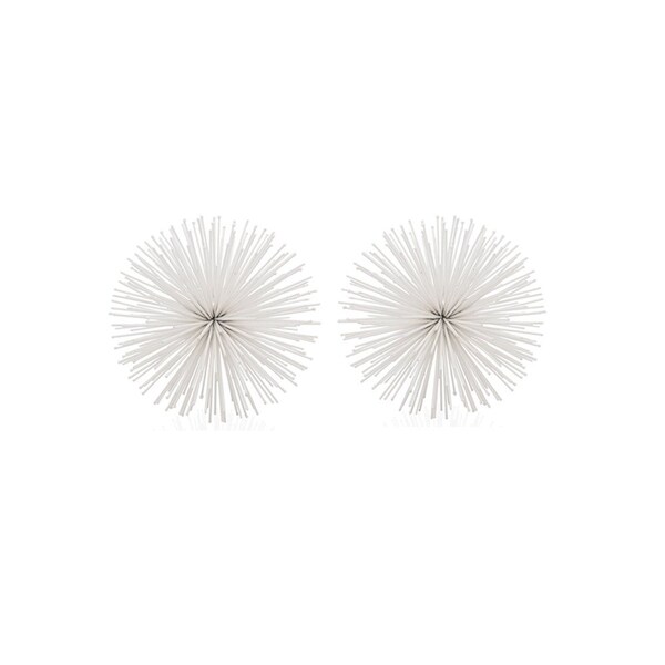 Bring some sizzle to your space with this eye-catching set of two white iron decorative spiky sphere tabletop sculpture. High-quality iron used in this white sculpture is both good looking and hard wearing. Great to use on its own or mix with other decorations for the perfect look. 4-inch h x 4-inch w x 4-inch d.