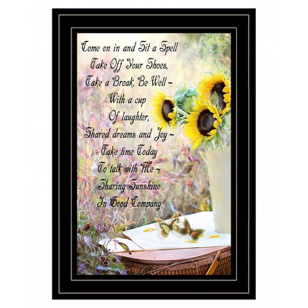 The sharing sunshine 1 black framed print wall art is the perfect decorative accessory for your home. This print is a visual artistic expression that allows you to decorate your space in style. Reproduced for you on paper, this hanging decorative accent will be a trendy and fashionable way to dress your walls. Adding this hanging wall art to your space to make your room feel more finished and attractive. Instantly liven up your space with this art that brings color and dimension to your walls. 15-inch H x 11-inch W x 1-inch D