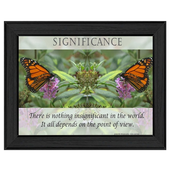 This significance 3 black framed print wall art will add a beautiful decorative accent to your decor. This butterfly inspired art will be a great addition to your space. This print is a visual artistic expression that allows you to decorate your space in style. Reproduced for you on paper, this hanging decorative accent will be a trendy and fashionable way to dress your walls. Hang on your wall to add some up to date fashion and decoration. Utilize this opportunity to create a focal point in the room with this fabulous wall decor option. 15-inch H x 19-inch W x 1.5-inch D