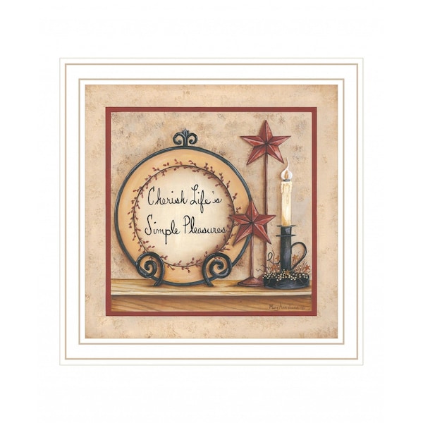 This simple pleasures 4 white framed print wall art will add a beautiful decorative accent to your decor. This print is a visual artistic expression that allows you to decorate your space in style. Reproduced for you on wood, this hanging decorative accent will be a trendy and fashionable way to dress your walls in a rustic and modern farmhouse vibe. Adding this hanging wall art to your space to make your room feel more finished and attractive. Instantly liven up your space with this art that brings color and dimension to your walls. 14-inch H x 14-inch W x 1-inch D