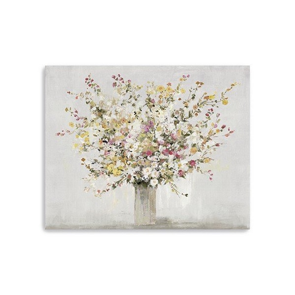 Add an air of fashion to your room and rejuvenate the space with this small colorful wildflowers in a vase canvas wall art. This print is a visual artistic expression that allows you to decorate your space in style. Reproduced for you on canvas, this hanging decorative accent will be a trendy and fashionable way to dress your walls. Adding this hanging wall art to your space to make your room feel more finished and attractive. Utilize this opportunity to create a focal point in the room with this fabulous wall decor option. 20 inches H x 16 inches W x 1.25 inches D