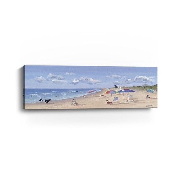 Unique and decorative, this small dogs playing at the beach canvas wall art will leave a lasting impression. This print is a visual artistic expression that allows you to decorate your space in style. Reproduced for you on canvas, this hanging decorative accent will be a trendy and fashionable way to dress your walls. Adding this hanging wall art to your space to make your room feel more finished and attractive. Instantly liven up your space with this art that brings color and dimension to your walls. 30 inches H x 10 inches W x 1.25 inches D