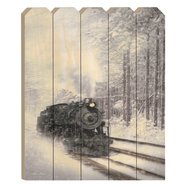 This snowy locomotive unframed picket fence wall art will add a beautiful decorative accent to your decor. This print is a visual artistic expression that allows you to decorate your space in style. Reproduced for you on wood, this hanging decorative accent will be a trendy and fashionable way to dress your walls in a rustic and modern farmhouse vibe. Adding this hanging wall art to your space to make your room feel more finished and attractive. Utilize this opportunity to create a focal point in the room with this fabulous wall decor option. 20 inches H x 16 inches W x 1 inches D