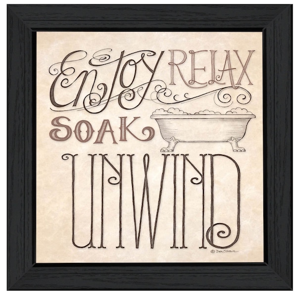 Unique and decorative, this soak and relax 4 black framed print bathroom wall art will leave a lasting impression. This print is a visual artistic expression that allows you to decorate your space in style. Reproduced for you on paper, this hanging decorative accent will be a trendy and fashionable way to dress your walls. Adding this hanging wall art to your space to make your room feel more finished and attractive. Instantly liven up your space with this art that brings color and dimension to your walls. 15-inch H x 15-inch W x 1-inch D