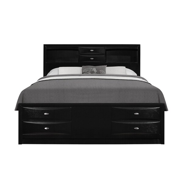 The solid wood full black eight drawers bed is the ultimate combination for your bedroom of comfort and style. For hidden storage and convenience, this great bed includes 8 drawers to stow your clothing and necessities. The versatile rectangular bookcase style headboard gives this bed easy access storage and display that is convenient and fashionable. Built to last, this piece not only looks good but reflects high quality craftsmanship from top to bottom. This bed is the perfect way to make your bedroom comfortable and inviting. 56" H x 57" W x 87" D