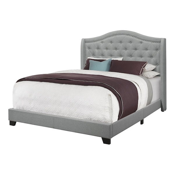 Solid Wood Queen Tufted Gray Upholstered Linen Bed With Nailhead Trim