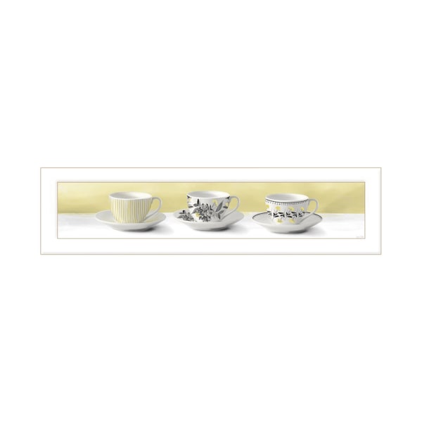 The stack of tea cupsyellow white framed print kitchen wall art is the perfect decorative accessory for your home. This print is a visual artistic expression that allows you to decorate your space in style. Reproduced for you on wood, this hanging decorative accent will be a trendy and fashionable way to dress your walls in a rustic and modern farmhouse vibe. Adding this hanging wall art to your space to make your room feel more finished and attractive. Utilize this opportunity to create a focal point in the room with this fabulous wall decor option. 9-inch H x 33-inch W x 1-inch D