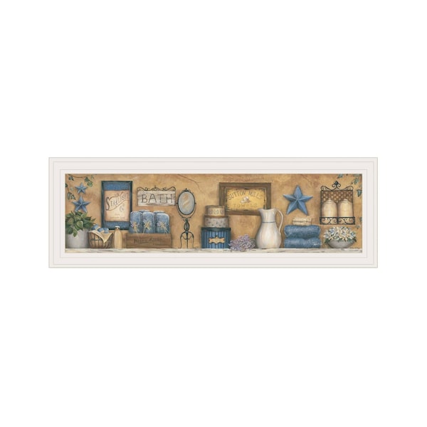 The starlight bath 2 white framed print bathroom wall art is the perfect decorative accessory for your home. This print is a visual artistic expression that allows you to decorate your space in style. Reproduced for you on paper, this hanging decorative accent will be a trendy and fashionable way to dress your walls. Adding this hanging wall art to your space to make your room feel more finished and attractive. Utilize this opportunity to create a focal point in the room with this fabulous wall decor option. 11-inch H x 33-inch W x 1-inch D