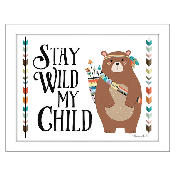 The stay wild my child 2 white framed print wall art is the perfect decorative accessory for your home. Add a sense of the woods, mountain or lodge lifestyle to your walls with this outdoorsy bear wall art. This print is a visual artistic expression that allows you to decorate your space in style. Reproduced for you on paper, this hanging decorative accent will be a trendy and fashionable way to dress your walls. Hang on your wall to add some up to date fashion and decoration. Instantly liven up your space with this art that brings color and dimension to your walls. 14-inch H x 18-inch W x 1-inch D