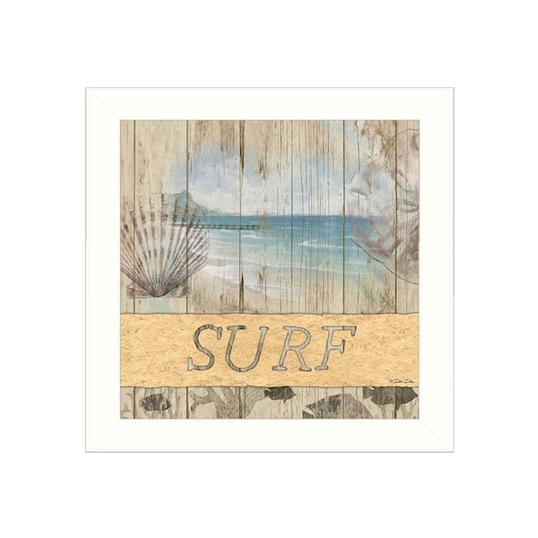 Add an air of fashion to your room and rejuvenate the space with this surf white framed print wall art. This print is a visual artistic expression that allows you to decorate your space in style. Reproduced for you on paper, this hanging decorative accent will be a trendy and fashionable way to dress your walls. Hang on your wall to add some up to date fashion and decoration. Utilize this opportunity to create a focal point in the room with this fabulous wall decor option. 14-inch H x 14-inch W x 1-inch D