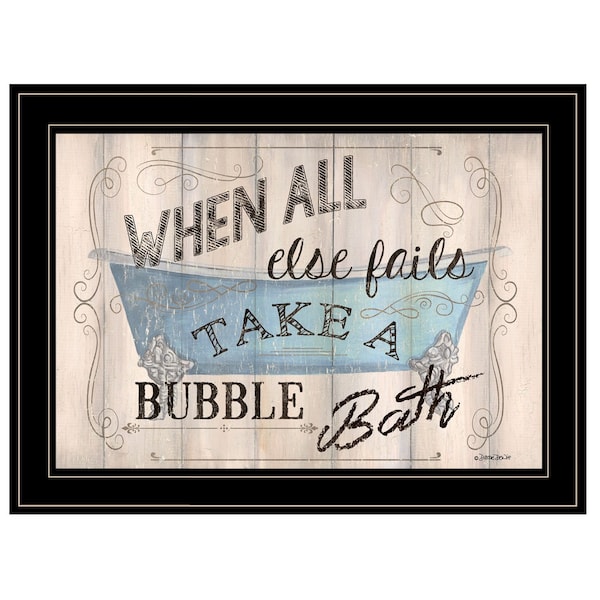 The take a bubble bath 2 black framed print bathroom wall art is the perfect decorative accessory for your home. This print is a visual artistic expression that allows you to decorate your space in style. Reproduced for you on paper, this hanging decorative accent will be a trendy and fashionable way to dress your walls. Adding this hanging wall art to your space to make your room feel more finished and attractive. Utilize this opportunity to create a focal point in the room with this fabulous wall decor option. 15-inch H x 19-inch W x 1-inch D