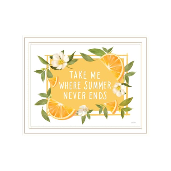 This take me where summer never ends white and gold framed print wall art will add a beautiful decorative accent to your decor. This print is a visual artistic expression that allows you to decorate your space in style. Reproduced for you on wood, this hanging decorative accent will be a trendy and fashionable way to dress your walls in a rustic and modern farmhouse vibe. Hang on your wall to add some up to date fashion and decoration. Instantly liven up your space with this art that brings color and dimension to your walls. 14-inch H x 18-inch W x 1-inch D