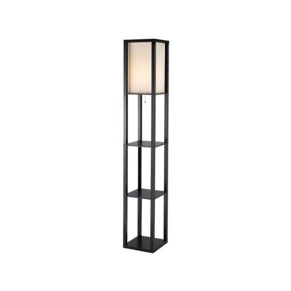 Tall Black Wood Floor Lamp with Two Shelves