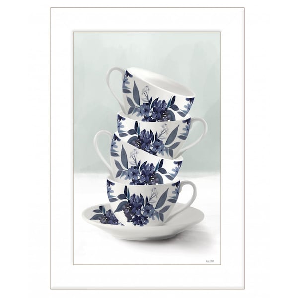 Add an air of fashion to your room and rejuvenate the space with this tea tower blue 1 white framed print kitchen wall art. This print is a visual artistic expression that allows you to decorate your space in style. Reproduced for you on wood, this hanging decorative accent will be a trendy and fashionable way to dress your walls in a rustic and modern farmhouse vibe. Adding this hanging wall art to your space to make your room feel more finished and attractive. Utilize this opportunity to create a focal point in the room with this fabulous wall decor option. 21-inch H x 15-inch W x 1-inch D